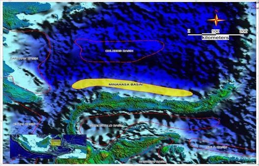Cekungan Minahasa terletak di bagian utara Pulau Sulawesi, Indonesia Timur. Secara geografis, cekungan ini terletak di antara 12°00’ – 12°40’ BT dan 10° – 20° LU dan memiliki luas area mencapai 16.910 km2. Batuan dasar cekungan berumur Kapur, dengan ketebalan 500-2.000 m pada kedalaman 2.000 m. Kerangka tektonik cekungan dipengaruhi oleh interaksi tumbukan tiga lempeng, yaitu Lempeng Pasifik yang bergerak ke barat, Lempeng India-Australia bergerak ke utara dan Lempeng Eurasia yang ditekan oleh pergerakan dua lempeng diatasnya. Batas cekungan berdasarkan pada anomali gaya berat yang menunjukkan anomali negatif dan didukung data isopach. Cekungan Minahasa dibatasi oleh Busur Sangihe dan Filipina Selatan di bagian timur, pada bagian selatan dibatasi oleh lengan utara Sulawesi, bagian barat oleh Pulau Kalimantan dan bagian utara oleh Cekungan Celebes.