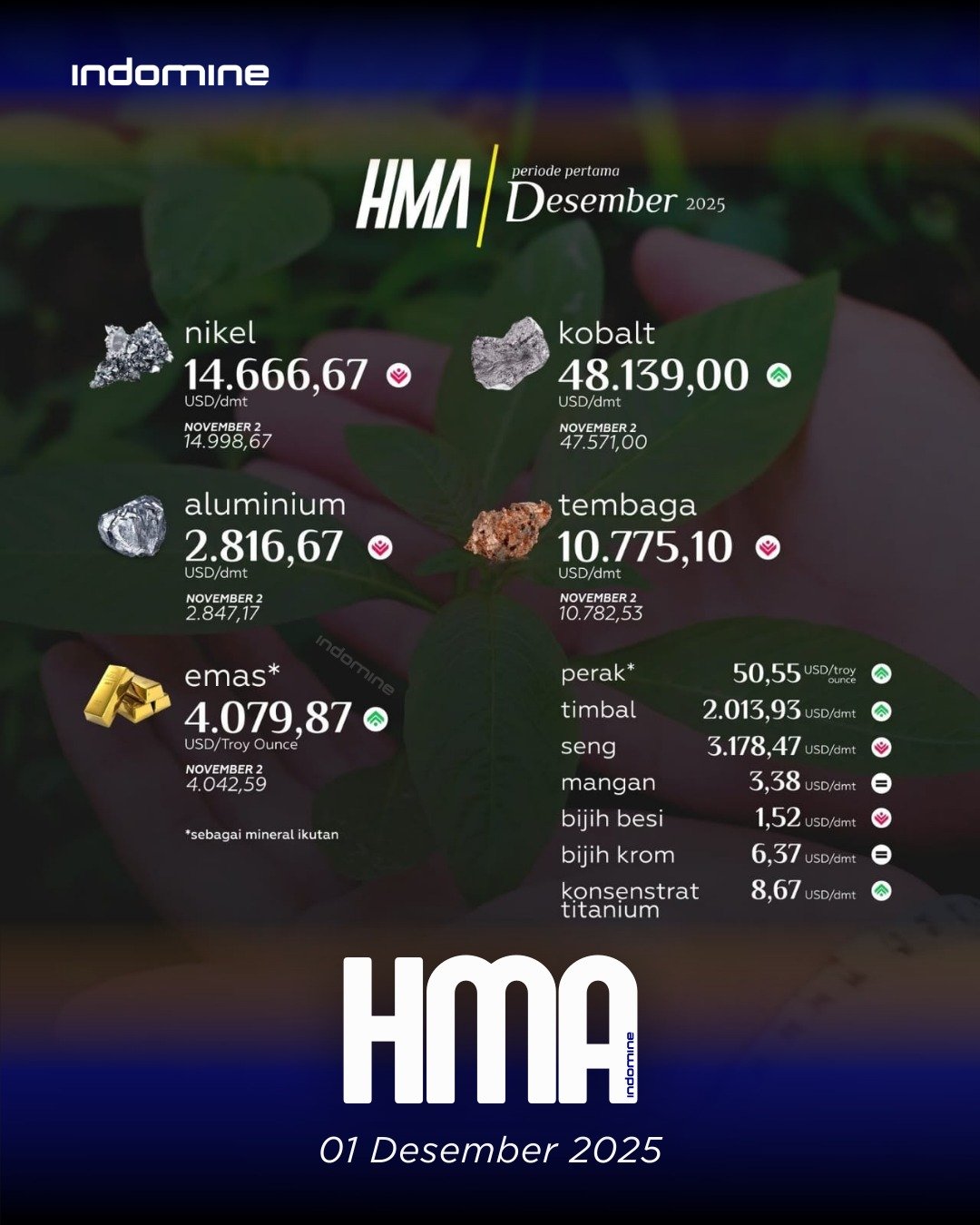 Berikut adalah Harga Mineral Acuan (HMA – Des 2025/ Periode 1):