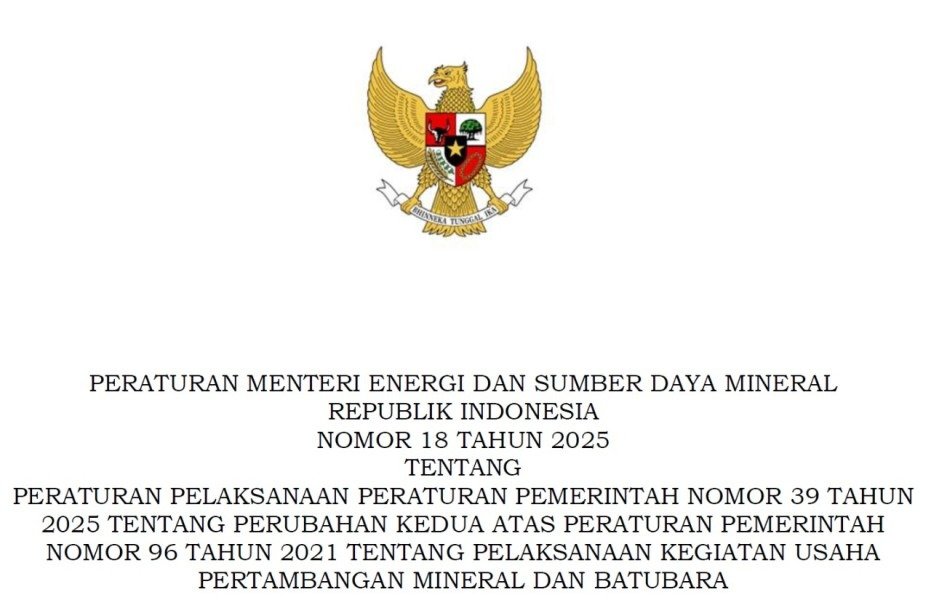 Detik/Bisnis – 24 November 2025 — Pemerintah melalui Menteri ESDM Bahlil Lahadalia resmi menerbitkan Peraturan Menteri ESDM No. 18 Tahun 2025 pada 14 November 2025. Aturan ini merinci mekanisme pemberian Wilayah Izin Usaha Pertambangan (WIUP) prioritas kepada badan usaha milik ormas keagamaan, serta koperasi, BUMN, dan BUMD.