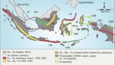 Van Leeuwen (2018) membagi Indonesia ke dalam 14 provinsi metalogeni berdasarkan distribusi endapan mineral yang sudah ditemukan dalam unit tektonik…