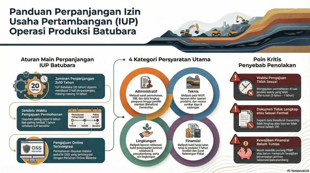 Panduan Perpanjangan Izin Usaha Pertambangan (IUP) Operasio Produksi Batuabra January 26, 2026 by geolocana@gmail.com Perpanjangan Izin Usaha Pertambangan (IUP) Tahap Kegiatan Operasi Produksi (OP) untuk komoditas batubara Author: geolocana@gmail.com Share this: Click to share on Facebook (Opens in new window) Facebook Click to share on X (Opens in new window) X