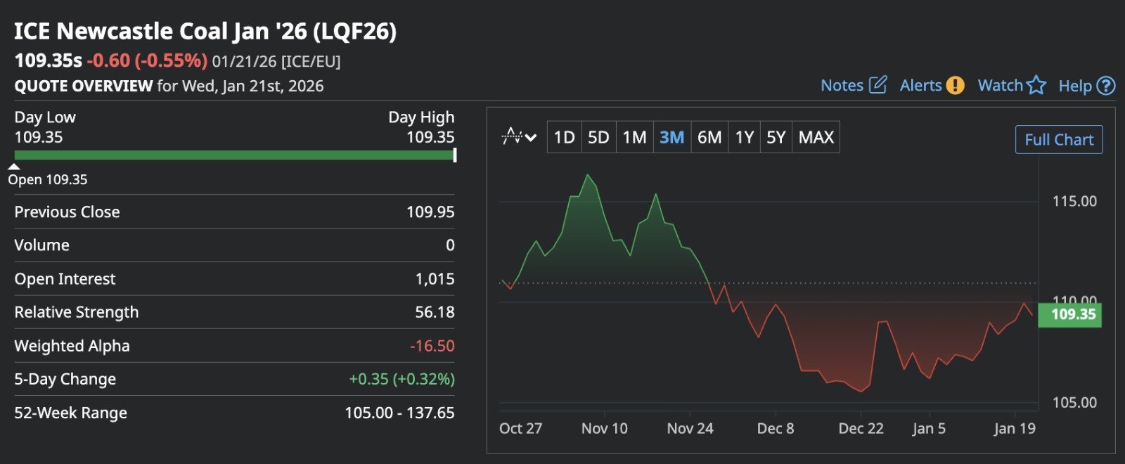Data perdagangan Kamis (22/1) menunjukkan tekanan jual teknikal:ICE Newcastle