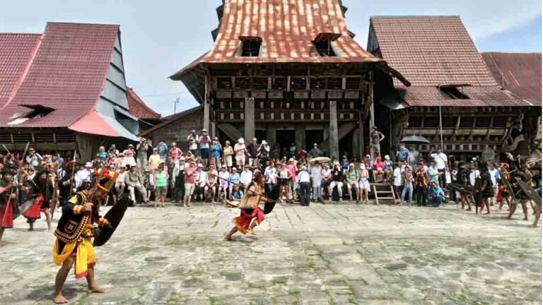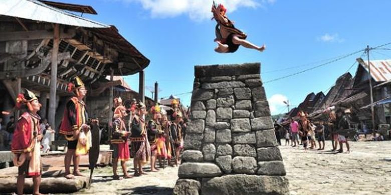 Bawömataluo is a cultural village located in Fanayama District, South Nias District. Bawömataluo literally means ‘The Sun Hill’ and lies about 270 m above sea level. In this village there are many megalithic relics that still be used for traditional ceremonies or daily activities. The landscape of this village is dominated by hundreds of traditional Nias traditional houses called Omo Hada or Omo Niha. Bawömataluo is also a home to Omo Nifolasara, the largest noble house in the whole of Nias island.