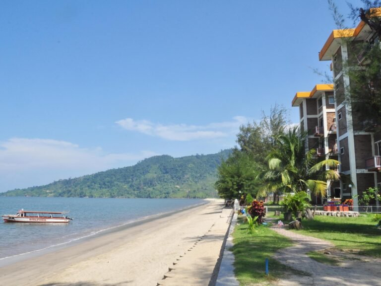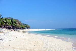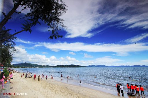 Pantai ini memiliki pemandangan yang indah dengan pasir berwarna putih dan airnya yang berwarna hijau kebiru-biruan yang sangat jernih. Mata Anda akan sangat puas menikmati pasir putih dan air yang tenang tanpa ombak. Melangkah di sepanjang pantai kaki Anda akan menumpu pada pasir putih yang lembut dan hangat. Kondisi pantai yang bersih membuat keadaan di pantai ini menjadi sangat nyaman.