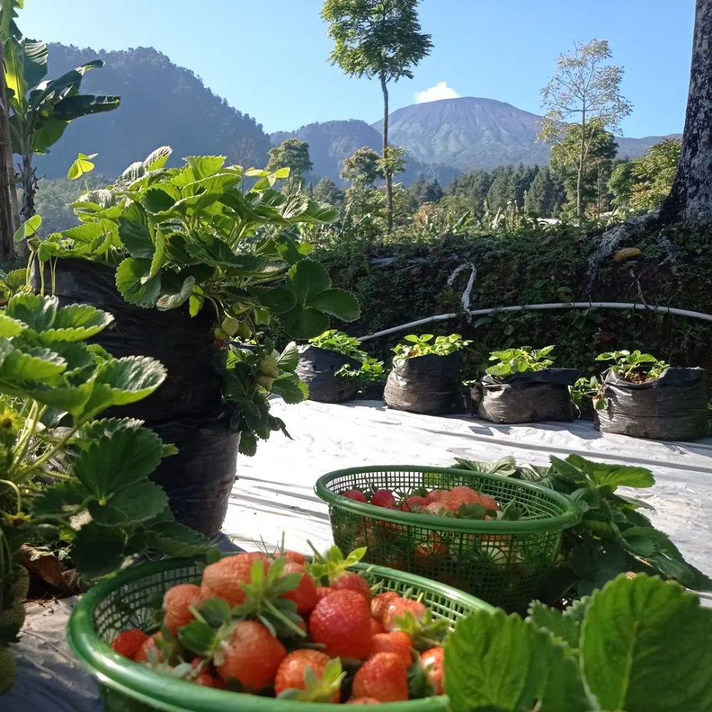 - Pemandangan Alam yang Menawan: Pemandangan Gunung Slamet yang menjulang tinggi dan hijaunya pepohonan di sekitar kebun stroberi menciptakan suasana yang asri dan menyegarkan.