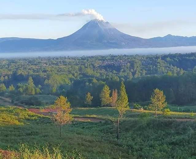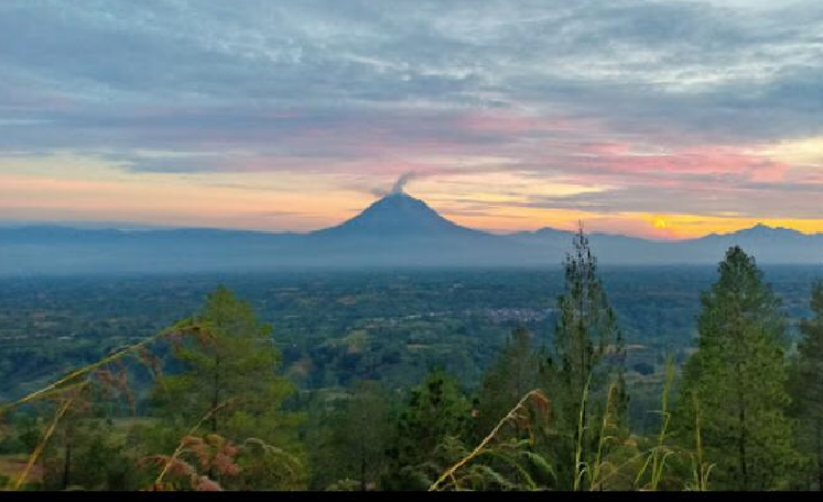 Pemandangan alam dengan penampakan jelas view Gunung Sinabung yang tampak perkasa. Di sekitar ini alamnya masih terjaga kelestarian lingkungan yang masih asri.
