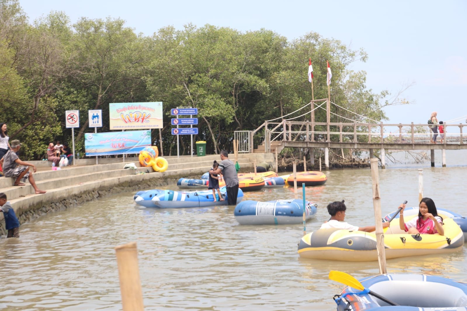 Dengan tiket masuk Rp 5.500 per orang (termasuk Rp 500 untuk asuransi), pengunjung dapat menikmati berbagai wahana dan fasilitas di WBK. Fasilitas tersebut meliputi dermaga “love” WBK, jetty yang menjorok ke laut, area tracking hutan mangrove seluas sekitar 3 ribu hektare, dermaga rindu WBK, perahu karet yang dapat disewa dengan harga Rp 10 ribu hingga Rp 25 ribu (tergantung ukuran), dan perahu wisata dengan tiket Rp 10 ribu per orang untuk menikmati pemandangan WBK dari laut.