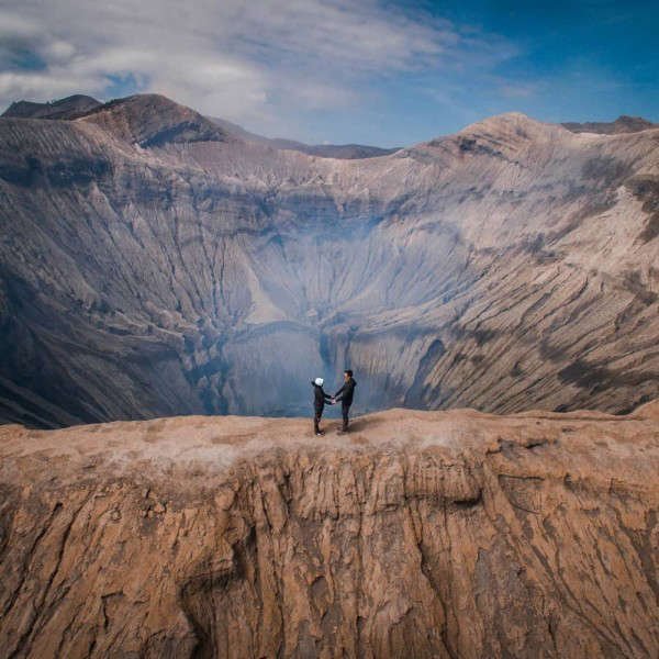 Pemandangan dari puncaknya terlampau indah. Kawah Gunung Bromo dihiasi dengan Pegunungan Tengger dan Batok yang membuat bentuk sebuah garisan terjal yang memesona.