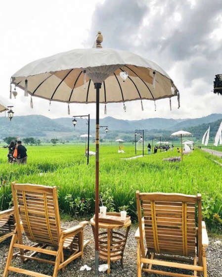 Meski membutuhkan satu jam dari pusat kota untuk bisa sampai ke Mahaloka Paradise, perjalanan yang jauh akan terbayar dengan pemandangan sawah yang memanjakan mata. Sudah banyak artis mampir ke sini, mulai dari keluarga Andre Taulany, Bella Saphira, sampai Rio Febrian. Nah, kalau kamu kapan, nih?