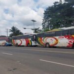 Sejumlah bus dan truk dari Jambi menuju Sumatera Barat (Sumbar) terpaksa berhenti di bahu jalan… -